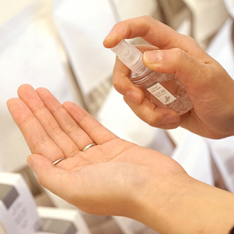 「LUCAS ハーブ除菌スプレー」の使い方 天然成分100%の除菌スプレーは手の除菌はもちろん、マスクやテーブルなど身の回りの除菌におススメです。